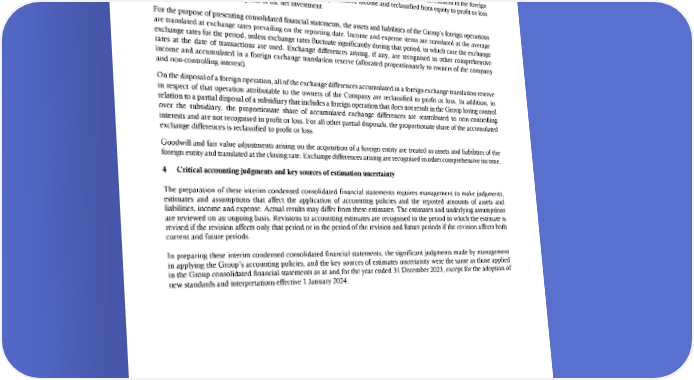ABU DHABI NATIONAL OIL COMPANY FOR DISTRIBUTION PJSC Notes to the interim condensed consolidated financial statements for the three-month period ended 31 March 2024 (continued) 3. Summary of significant accounting policies (continued) 3.5 Foreign currencies (continued) • Exchange differences on monetary items receivable from or payable to a foreign operation for which settlement is neither planned nor likely to occur in the foreseeable future (therefore forming part of the net investment in the foreign operation), which are recognised initially in other comprehensive income and reclassified from equity to profit or loss on disposal or partial disposal of the net investment For the purpose of presenting consolidated financial statements, the assets and liabilities of the Group’s foreign operations are translated at exchange rates prevailing on the reporting date. Income and expense items are translated at the average exchange rates for the period, unless exchange rates fluctuate significantly during that period, in which case the exchange rates at the date of transactions are used. Exchange differences arising, if any, are recognised in other comprehensive income and accumulated in a foreign exchange translation reserve (allocated proportionately to owners of the company and non-controlling interest). On the disposal of a foreign operation, all of the exchange differences accumulated in a foreign exchange translation reserve in respect of that operation attributable to the owners of the Company are reclassified to profit or loss. In addition, in relation to a partial disposal of a subsidiary that includes a foreign operation that does not result in the Group losing control over the subsidiary, the proportionate share of accumulated exchange differences are reattributed to non-controlling interests and are not recognised in profit or loss. For all other partial disposals, the proportionate share of the accumulated exchange differences is reclassified to profit or loss. Goodwill and fair value adjustments arising on the acquisition of a foreign entity are treated as assets and liabilities of the foreign entity and translated at the closing rate. Exchange differences arising are recognised in other comprehensive income. 4 Critical accounting judgments and key sources of estimation uncertainty The preparation of these interim condensed consolidated financial statements requires management to make judgments, estimates and assumptions that affect the application of accounting policies and the reported amounts of assets and liabilities, income and expense. Actual results may differ from these estimates. The estimates and underlying assumptions are reviewed on an ongoing basis. Revisions to accounting estimates are recognised in the period in which the estimate is revised if the revision affects only that period or in the period of the revision and future periods if the revision affects both current and future periods. In preparing these interim condensed consolidated financial statements, the significant judgments made by management in applying the Group’s accounting policies, and the key sources of estimates uncertainty were the same as those applied in the Group consolidated financial statements as at and for the year ended 31 December 2023, except for the adoption of new standards and interpretations effective 1 January 2024. 14