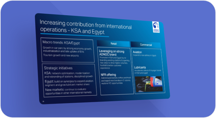 Increasing contribution from international operations - KSA and Egypt Macro trends: KSA/Egypt Retail Commercial Growth in car parc by strong economy growth, Leveraging on strong Aviation industrialization and late uptake of EVs ADNOC brand Expand to new airlines in Egypt Tourism growth and new airports Promote in KSA and Egypt by re- branding existing stations & opening new sites to drive higher volumes, footfall & better customer Lubricants Strategic initiatives experience Accelerate rollout of Voyager brand KSA: network optimization, modernization NFR offering in KSA and Egypt and rebranding of stations, disciplined growth Add brewed barista coffee and fresh Egypt: build on synergies to expandaviation packaged merchandise in C-stores, segmentand growlubricantmarket share explore VIC opportunities New markets: continue to evaluate opportunities in other international markets 35
