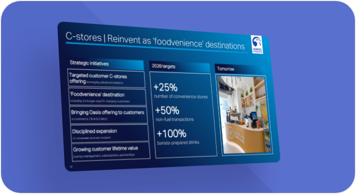 C-stores | Reinvent as ‘foodvenience’ destinations Strategic initiatives 2028 targets Tomorrow Targeted customer C-stores offering leveraging advanced analytics +25% ‘Foodvenience’ destination number of convenience stores including for longer-stay EV charging customers +50% Bringing Oasis offering to customers e-commerce, Click & Collect non-fuel transactions Disciplined expansion +100% of convenience store footprint Growing customer lifetime value barista-prepared drinks journey management, subscriptions, partnerships 27