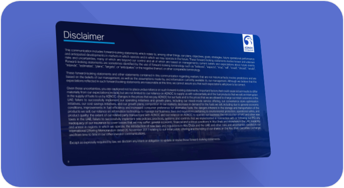 Disclaimer This communication includes forward-looking statements which relate to, among other things, our plans, objectives, goals, strategies, future operational performance and anticipated developments in markets in which operate and in which we may operate in the future. These forward-looking statements involve known and unknown risks and uncertainties, many of which are beyond our control and all of which are based on management’s current beliefs and expectations about future events. Forward-looking statements are sometimes identified by the use of forward-looking terminology such as “believes”, “expects”, “may”, “will”, “could”, “should”, “would”, “intends”, “estimates”, “plans”, “targets”, or “anticipates” or the negative thereof, or other comparable terminology. These forward-looking statements and other statements contained in this communication regarding matters that are not historical facts involve predictions and are based on the beliefs of our management, as well as the assumptions made by, and information currently available to, our management. Although we believe that the expectations reflected in such forward looking statements are reasonable at this time, we cannot assure you that such expectations will prove to be correct. Given these uncertainties, you are cautioned not to place undue reliance on such forward-looking statements. Important factors that could cause actual results to differ materially from our expectations include, but are not limited to: our reliance on ADNOC to supply us with substantially all of the fuel products that we sell; an interruption in the supply of fuels to us by ADNOC; changes in the prices that we pay ADNOC for our fuels and to the prices that we are allowed to charge our retail customers in the UAE; failure to successfully implement our operating initiatives and growth plans, including our mixed-mode service offering, our convenience store optimization initiatives, our cost savings initiatives, and our growth plans; competition in our markets; decrease in demand for the fuels we sell, including due to general economic conditions, improvements in fuel efficiency and increased consumer preference for alternative fuels; the dangers inherent in the storage and transportation of the products we sell; our reliance on information technology to manage our business; laws and regulations pertaining to environmental protection, operational safety, and product quality; the extent of our related party transactions with ADNOC and our reliance on ADNOC to operate our business; the introduction of VAT and other new taxes in the UAE; failure to successfully implement new policies, practices, systems and controls that we implemented in connection with or following our IPO; any inadequacy of our insurance to cover losses that we may suffer; general economic, financial and political conditions in Abu Dhabi and elsewhere in the UAE; instability and unrest in regions in which we operate; the introduction of new laws and regulations in Abu Dhabi and the UAE; and other risks and uncertainties detailed in our International Offering Memorandum dated 26 November 2017 relating to our initial public offering and the listing of our shares on the Abu Dhabi Securities Exchange, and from time to time in our other investor communications. Except as expressly required by law, we disclaim any intent or obligation to update or revise these forward-looking statements. 3