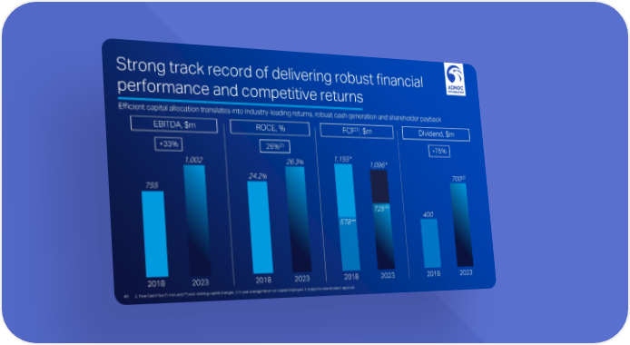 Strong track record of delivering robust financial performance and competitive returns Efficient capital allocation translates into industry-leading returns, robust cash generation and shareholder payback EBITDA, $m ROCE, % (1) FCF , $m Dividend, $m (2) +33% 26% +75% 1,002 26.3% 1,155* 1,096* 24.2% 700(3) 755 725** 400 578** 2018 2023 2018 2023 2018 2023 2018 2023 41 1. Free Cash Flow (*) incl. and (**) excl. working capital changes. 2. 5-year average Return on Capital Employed. 3. Subject to shareholders’ approval