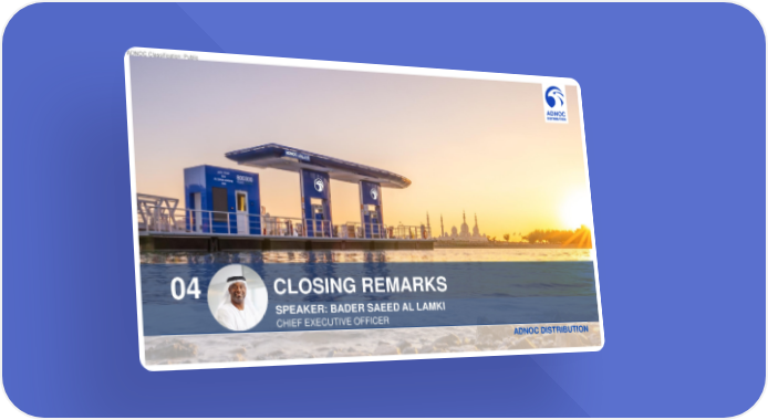 ADNOC Classification: Public 04 CLOSING REMARKS SPEAKER:BADER SAEED AL LAMKI CHIEF EXECUTIVE OFFICER ADNOC DISTRIBUTION