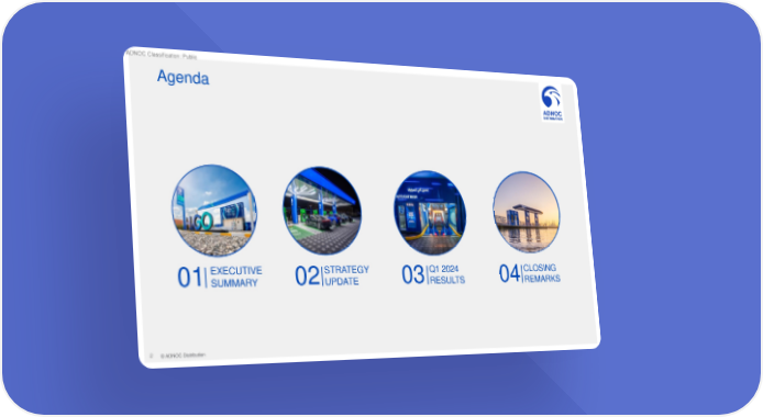 Presentation Page 1 Page 3ADNOC Classification: Public Agenda 01EXECUTIVE 02STRATEGY 03Q1 2024 04CLOSING SUMMARY UPDATE RESULTS REMARKS 2 © ADNOC Distribution