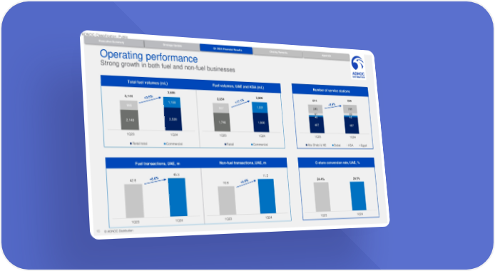 ADNOC Classification: Public Executive Summary Strategy Update Q1 2024 Financial Results Closing Remarks Appendix Operating performance Strong growth in both fuel and non-fuel businesses Total fuel volumes (mL) Fuel volumes, UAE and KSA (mL) Number of service stations 3,686 2,900 814 846 3,144 2,654 1,158 1,031 240 245 995 907 69 67 45 40 2,149 2,528 1,746 1,868 467 487 1Q23 1Q24 1Q23 1Q24 1Q23 1Q24 Retail total Commercial Retail Commercial Abu Dhabi & NE Dubai KSA Egypt Fuel transactions, UAE, m Non-fuel transactions, UAE, m C-store conversion rate, UAE, % 45.3 11.3 42.5 24.4% 24.5% 10.6 1Q23 1Q24 1Q23 1Q24 1Q23 1Q24 15 © ADNOC Distribution