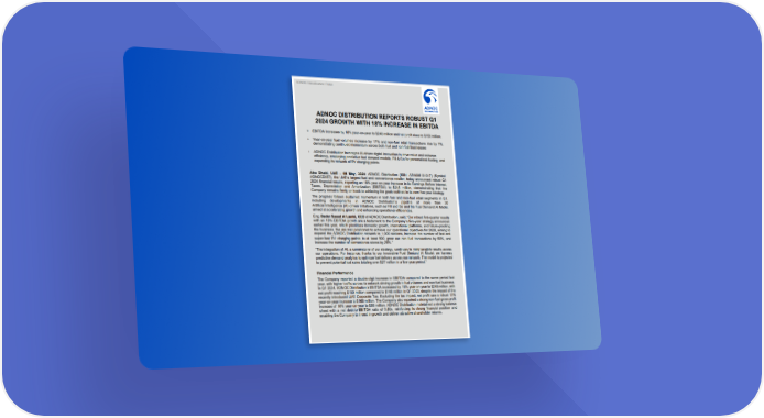 ADNOC Classification: Public ADNOC DISTRIBUTION REPORTS ROBUST Q1 2024 GROWTH WITH 18% INCREASE IN EBITDA • EBITDA increases by 18% year-on-year to $248 million and net profit rises to $150 million. • Year-on-year fuel volumes increase by 17% and non-fuel retail transactions rise by 7%, demonstrating continued momentum across both fuel and non-fuel businesses • ADNOC Distribution leverages AI-driven digital innovation to drive value and enhance efficiency, employing predictive fuel demand models, Fill & Go for personalized fueling, and expanding its network of EV charging points Abu Dhabi, UAE – 09 May, 2024: ADNOC Distribution (ISIN: AEA006101017) (Symbol: ADNOCDIST), the UAE’s largest fuel and convenience retailer, today announced robust Q1 2024 financial results, reporting an 18% year-on-year increase in its Earnings Before Interest, Taxes, Depreciation and Amortization (EBITDA) to $248 million, demonstrating that the Company remains firmly on track to achieving the goals outlined in its new five-year strategy. The progress follows sustained momentum in both fuel and non-fuel retail segments in Q1, including developments in ADNOC Distribution’s pipeline of more than 20 Artificial Intelligence (AI)-driven initiatives, such as Fill and Go and the Fuel Demand AI Model, aimed at accelerating growth and enhancing operational efficiencies. Eng. Bader Saeed Al Lamki, CEO of ADNOC Distribution, said, “Our robust first-quarter results with an 18% EBITDA growth are a testament to the Company’s five-year strategy announced earlier this year, which prioritizes domestic growth, international platforms, and future-proofing the business. We are well positioned to achieve our operational objectives for 2028, aiming to expand the ADNOC Distribution network to 1,000 stations, increase the number of fast and super-fast EV charging points to at least 500, grow our non-fuel transactions by 50%, and increase the number of convenience stores by 25%.” “The integration of AI, a cornerstone of our strategy, continues to yield tangible results across our operations. For instance, thanks to our innovative Fuel Demand AI Model, we harness predictive demand analytics to optimize fuel delivery across our network. The model is projected to prevent potential lost sales totaling over $27 million in a five-year period.” Financial Performance The Company reported a double-digit increase in EBITDA compared to the same period last year, with higher traffic across its network driving growth in fuel volumes and non-fuel business. In Q1 2024, ADNOC Distribution’s EBITDA increased by 18% year-on-year to $248 million, with net profit reaching $150 million compared to $146 million in Q1 2023, despite the impact of the recently introduced UAE Corporate Tax. Excluding the tax impact, net profit saw a robust 13% year-on-year increase to $165 million. The Company also reported a strong non-fuel gross profit increase of 16% year-on-year to $55 million. ADNOC Distribution maintained a strong balance sheet with a net debt-to-EBITDA ratio of 0.50x, reinforcing its strong financial position and enabling the Company to invest in growth and deliver attractive shareholder returns.