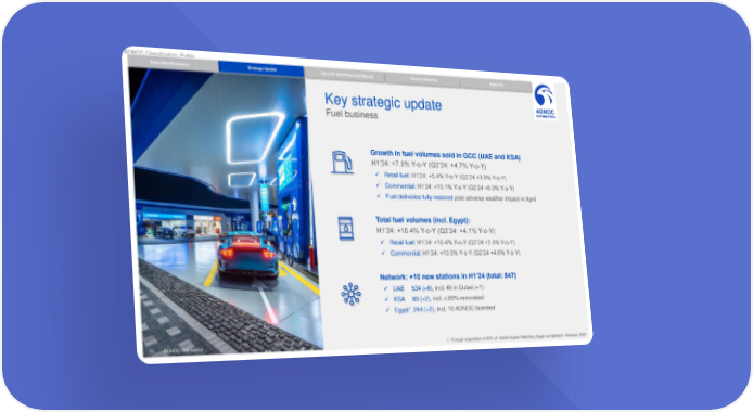 ADNOC Classification: Public Executive Summary Strategy Update Q2 & H1 2024 Financial Results Closing Remarks Appendix Key strategic update Fuel business Growth in fuel volumes sold in GCC (UAE and KSA) H1’24: +7.0% Y-o-Y (Q2’24: +4.7% Y-o-Y) ✓ Retail fuel: H1’24: +5.4% Y-o-Y (Q2’24 +3.9% Y-o-Y) ✓ Commercial: H1’24: +10.1% Y-o-Y (Q2’24 +6.3% Y-o-Y) ✓ Fuel deliveries fully restored post adverse weather impact in April Total fuel volumes (incl. Egypt): H1’24: +10.4% Y-o-Y (Q2’24: +4.1% Y-o-Y) ✓ Retail fuel: H1’24: +10.4% Y-o-Y (Q2’24 +3.9% Y-o-Y) ✓ Commercial: H1’24: +10.5% Y-o-Y (Q2’24 +4.6% Y-o-Y) Network: +10 new stations in H1’24 (total: 847) ✓ UAE 534 (+6), incl. 45 in Dubai (+1) ✓ KSA 69 (+2), incl. c.85% renovated ✓ Egypt1 244 (+2), incl. 10 ADNOC-branded 11 © ADNOC Distribution ADNOC Distribution 1. Through acquisition of 50% of TotalEnergies Marketing Egypt completed in February 2023