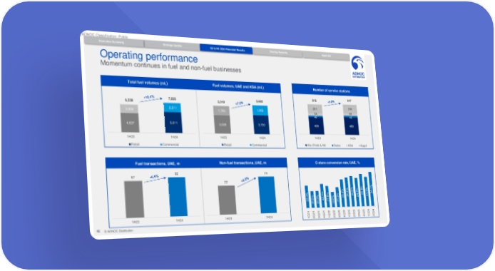 ADNOC Classification: Public Executive Summary Strategy Update Q2 & H1 2024 Financial Results Closing Remarks Appendix Operating performance Momentum continues in fuel and non-fuel businesses Total fuel volumes (mL) Fuel volumes, UAE and KSA (mL) Number of service stations 816 847 6,539 7,222 5,310 5,682 241 244 2,002 2,211 1,783 1,962 64 69 42 45 4,537 5,011 3,528 3,720 469 489 1H23 1H24 1H23 1H24 1H23 1H24 Retail Commercial Retail Commercial Abu Dhabi & NE Dubai KSA Egypt Fuel transactions, UAE, m Non-fuel transactions, UAE, m C-store conversion rate, UAE, % 87 92 24 22 % % % % .1% % % .4 .8 .2% 5.4 .5 6 % .4 % % 3.8 24 24 4 2 24 2 .02 .2% .3% 22 1.8 % 1.3 2 2 2 20 20 2 9.8 2 1 21 21 21 21 22 22 22 22 23 23 23 23 24 24 1H23 1H24 1H23 1H24 1Q 2Q 3Q 4Q 1Q 2Q 3Q 4Q 1Q 2Q 3Q 4Q 1Q 2Q 16 © ADNOC Distribution